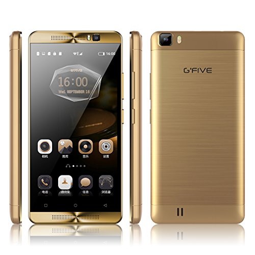 Gfive L3 3G Smartphone,5.5 '' HD Quad Core 16GB ROM,Enorme 5000mAh Batería Dual SIM Desbloqueado Celular (Dorado champagne)