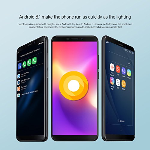 CUBOT Nova 4G Network Pantalla 18:9/5.5" Android 8.1 Dual 4G Dual Sim Telefono Libre, Huellas Dectilares, 3GB + 16GB, Camara Trasera 13MP/ Frontal 8MP, Procesador Quad-Core, Negro
