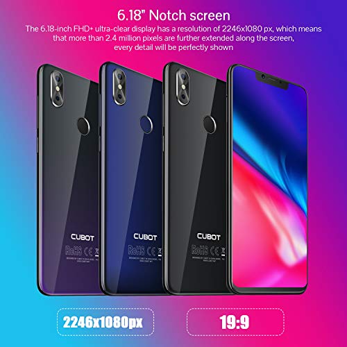Pantalla 19:9 FHD+(2246x1080) de 6.18" Permite una experiencia visual más inmersiva y perfecta para el consumo de contenidos digitales de la nueva era. además,?El CUBOT P20 viene con la pantalla 18:9 , que ocupa prácticamente más de un 80% de toda la parte delantera, con un formato 18:9 y una resolución FHD+ (2246x1080), lo que permite mejorar la navegación, la escritura, la lectura, la forma de consumo de contenidos multimedia y la experiencia a la hora de jugar a videojuegos.